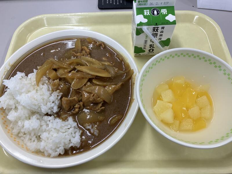 ●1月28日 給食(つがーるちゃんカレー) この日のメニューは、地元の食材を使った「つがーるちゃんカレー」でした。今回は特にゴボウがゴロゴロと入っていて食感も良く、大変おいしくいただきました。